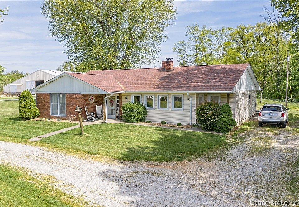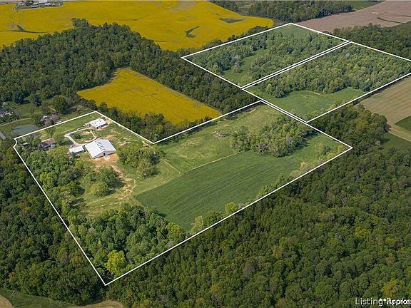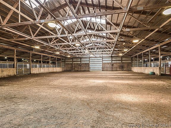 HORSE FARM: Just over Floyd County line in Harrison County… 30 minutes to Louisville.. 10 miles from exit 119 ( Greenville/Hwy 150) then RIGHT on Reisert Road, half mile for very easy access for boarder/trainers… Indoor arena (120 x 114) with (20) 10X12 Stalls, wash rack, office and bath, new skylights were installed in 2019. There is also a 72x60 hay barn and 36x60 utility barn with a 16x60 covered lean to and 16 x 60 4’ walkway.. with 66 acres total.. comprised of: (2) 20 acre parcels with pastures, woods and 2 ponds. The pastures have alfalfa, orchard grass & mix grasses… the other 26 acre parcel has an 1800 Sq Ft Home with 3 bedrooms, 2 baths, eat-in kitchen, Living Room with fireplace and Great Room… 3 barns.. arena, (20) 10x12 stalls with aluminum hardware & feeders, zoned lighting, new skylights, wash rack, office, tack room and bathroom. Additional pasture for grazing and hay.… For the last 40+ years operated as Neely Quarter Horses, this location is perfect for private use or as a horse business. Most gates and some additional items included… Hay barn has Stallion stall and 2 mare stalls for breeding. Soil tests were done in 2020.. Pre approval letter will be needed prior to showings..