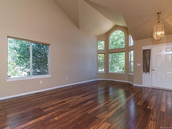 A truly wonderful location on a corner, cul d sac, newly installed laminate wood floors throughout this Richmond, 'Brady' model, home's exterior has been recently painted. Enter into a vaulted ceiling living room & open floor plan from the kitchen to the family room with a gas fireplace & built-in shelving. A kitchen island adds to the counter space & efficient use of space for the chef! Main level family room w/ fireplace & built-ins. Adjacent to the kitchen is a south facing wood deck & a fenced backyard. There is also a half bath & laundry room w/ direct access to the 2 car garage. Upstairs there is a generous loft area plus 3 bedrooms, including a master w/ a five piece bath & walk-in closet. Need more space, look to the finished basement w/ a large bedroom (non-conforming) rec room & 3/4 bath w/ a built-in wet bar. Enjoy the Central air conditioning w/all appliances included. Conveniently located close to the Hunters Glen Golf course & minutes to I-25. The water heater is Nov '14