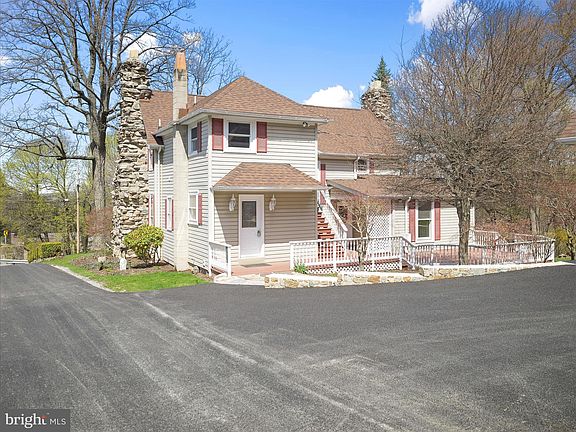 Once called “The Gray Gables Inn”, this stunning, historical Cape Cod located near Pen Mar Park boasts 4-5 bedrooms, 2-bathrooms, blending classic charm with modern amenities. The inviting front porch with brand new steps and elegant stone pillars sets the stage for this warm and welcoming residence. Inside, the large living room features hardwood floors, wainscoting, and a striking stone wood-burning fireplace, creating a cozy and elegant atmosphere. The eat-in kitchen is equipped with stainless steel appliances, recessed lighting, and ample counter space, making it perfect for cooking and entertaining. The home also features a second stone wood-burning fireplace in the dining room, adding warmth and character. A main-level bonus room with a full bath provides versatility, whether for guests or primary suite, a home office, or additional living space. The upstairs landing, with cased openings overlooking the living room, leads to newly carpeted bedrooms, each with cozy alcoves by the windows. The full bath on this level features a relaxing Jacuzzi tub. The fourth bedroom includes a laundry area and a doorway leading to the stairs down to the lower back deck, offering convenient outdoor access. The expansive rear deck provides a perfect space for entertaining or relaxing, with stairs leading to the second level. An oversized 3-car garage with a spacious second level offers ample storage, a workshop area, or potential for additional living space. The entranceway, driveway, and the garage area brand new paving! Call today to schedule a private tour!