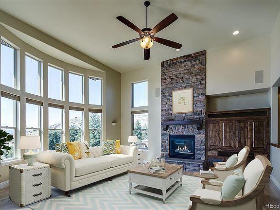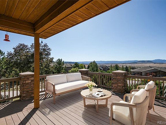 When imagining Colorado, one thinks mountains, trails, sunshine...Upon entering this home, one feels like they have finally made it! Crystal Valley Ranch is tucked into the sloped bluffs, epitomizing foothills living & this home is in coveted "Painter's Ridge". With easy access to CRV YMCA Rec Center, biking, walking & hiking trails, this is the perfect locale. It lies in a part of the neighborhood where the views of the Rocky Mountains are unsurpassed. This home sits at the top of such a hill, & faces the Front Range. Experience each mountain sunset from virtually every room in the house, particularly the massive deck off the main level. Freshly painted, perfectly maintained & a livable ranch floor plan make this substantially superior in design and execution. Kitchen has only high-end finishes, including Cherry cabinetry, Viking & Blue Star appliances, a large island and nook. Great room has vaulted ceilings, combined with massive windows, capturing the view perfectly. NEW PRICE