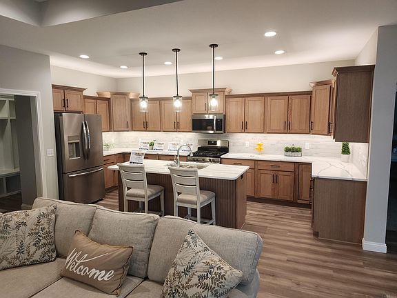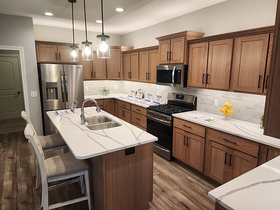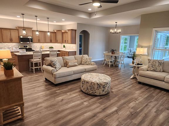 Under contract since drywall. The stunning Sangria is now completed and back on the market due to the buyer's sale of their home falling through. Take the time to view this beautiful pond lot home situated on a cul-de-sac lot with an incredible setting. This is one of 36 homes that will make up this wonderful neighborhood. All lots are either on a pond or have a tree lined back yard offering tranquility and privacy. This home offers both the pond setting and a tree lined backyard. The Sangria offers 2,033 sq/ft of living space with 3 bedrooms, a large open island kitchen, a sunroom, an expansive covered patio with an additional matching uncovered patio, sunroom, dining room, mudroom, laundry room, and a beautiful master bedroom & bath with a walk in shower & walk in closet that provides access directly into the laundry room. Features include quartz countertops in the kitchen along with soft close doors & drawers, recessed lighting, 9' ceilings, minimum threshold entries, comfort height toilets, LVP (Luxury Vinyl Plank) flooring, 3 car garage, Floor outlet in the great room, a curb cut, and all of the standards that one would expect to find in a Majestic Home. Attached interior photos are of a finished Sangria to provide a visual of what the interior will look look like. Finish colors/styles may vary from these finished photos to what may be in the home.