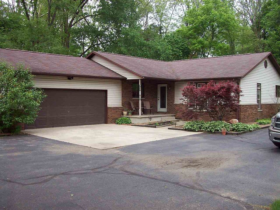 Very nice 2 bedroom 2 bath spacious home in quiet, secluded, park-like setting near Winamac. Inside amenities include sunken living room, whirlpool tub, tons of storage, hot tub off master sweet, attached garage. Outside there's a screened-in gazebo overlooking the pond and park-like backyard. Two pole-buildings, one finished with workshop & office and blacktop driveway.
