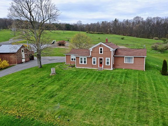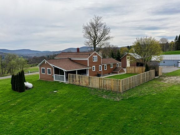 This 1860's farmhouse has been renovated with integrity and attention to detail. Gleaming hardwood floors, molding and trim work throughout. Updated, spacious eat-in kitchen! Formal dining room and living room with gas stove as well as an open office area with french doors! Perched on a pretty knoll, this home affords stunning distant views and plenty of natural light. 3 spacious bedrooms and 2 full baths round out this classic home. Covered back patio just off the living room with fencing makes for great outdoor entertaining space. Lovely, well maintained 3 acre lot.