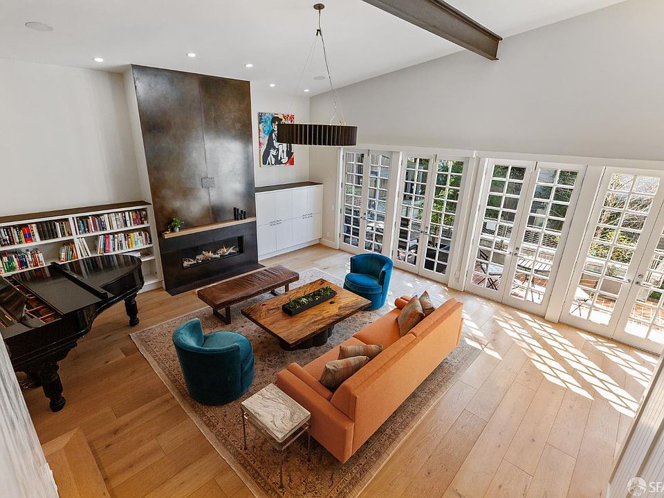 Highly sought after developer's home at 1338 Filbert Street, part of four historic townhomes, enlarged & converted into luxury residences, hidden in the middle of the block, just around the corner from Polk Street, Francisco Park & Alice Marble Tennis Courts. This grand modern home is being offered fully furnished, features 4bd/6ba(2 1/2), large living room, separate kitchen/dining area, family room & a private gym. The architecturally significant formal living room overlooks the private full length patio, with fireplace, high vaulted ceilings & custom plaster wall. Adjacent to the living room is formal kitchen/ dining area, powder room & a separate bedroom/office with full en-suite bathroom. The upper level features one-of-two owner's suites, with peek-a-boo views of the Golden Gate Bridge. The lower level features 2 bedrooms with ensuite bathrooms, a powder room, large laundry room, multiple storage rooms & a spacious family room, with wet bar and temperature controlled wine cellar. The basement level has a private gym & two car parking. This home comes with modern features such as dumbwaiter leading from the basement to kitchen level, radiant heating, eight zone Sonos sound system, skylights & designer appliances/fixtures.