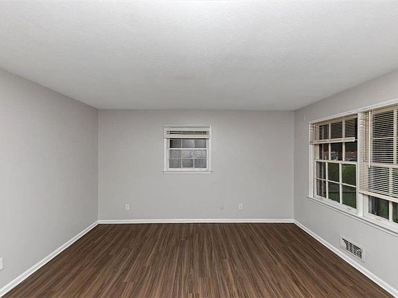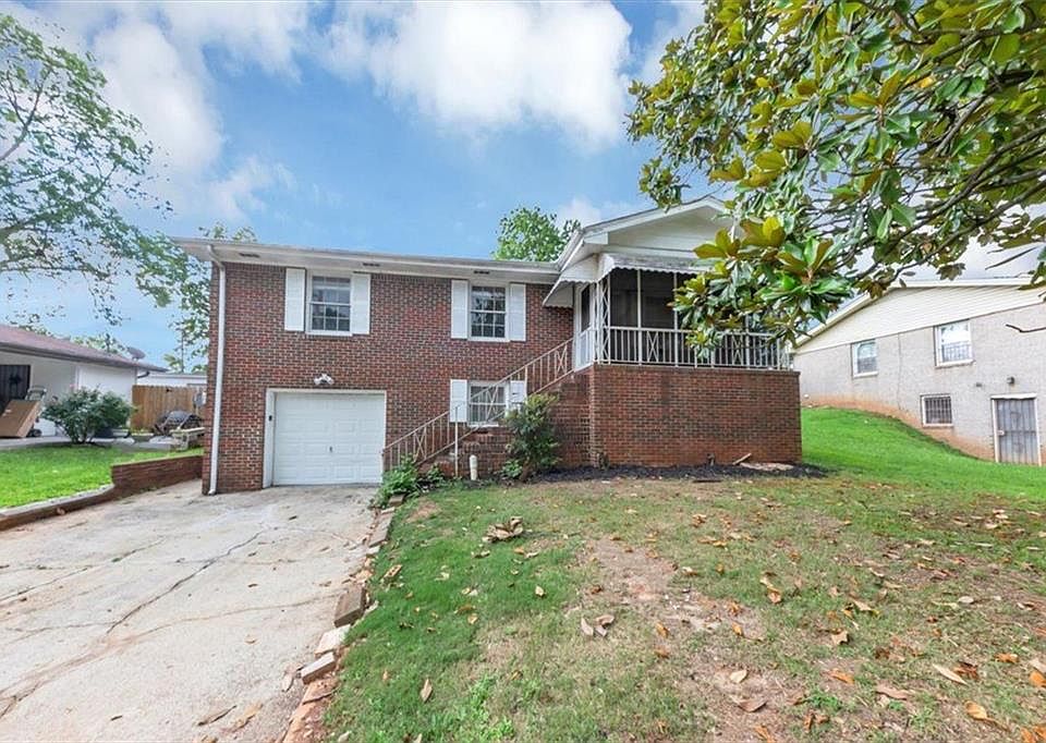 This four-bedroom home sits on a generously sized lot and offers a blank canvas for creating your dream backyard oasis. The all-brick exterior features shutters on the front exterior window giving a classic, low-maintenance appeal. Inside, you'll find laminate wood flooring throughout, creating a warm and cohesive living space. The kitchen includes white cabinetry and an eat-in dining area perfect for casual meals. A screened-in front porch at the top of the entry stairs provides a welcoming outdoor sitting area. The one-car garage offers direct entry into the home, adding convenience and security. This property blends solid construction with endless potential—ideal for homeowners looking to personalize and make it their own.