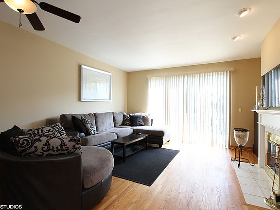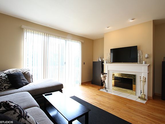 Must see this beautiful unit with great natural light and nice floor plan. First floor features open kitchen w/granite counters, all stainless steel appliances inc. brand new range/micro, hardwood floors, fireplace w/glass door, sliding door to balcony overlooking large open common area yard with wooded view plus a half bath. Second floor has 2 nice size bedrooms both with private baths, open hallway and laundry with full size W/D. Spacious basement ready for you to finish to your liking has sliding door to patio and high ceilings. This home is a pleasure to show.