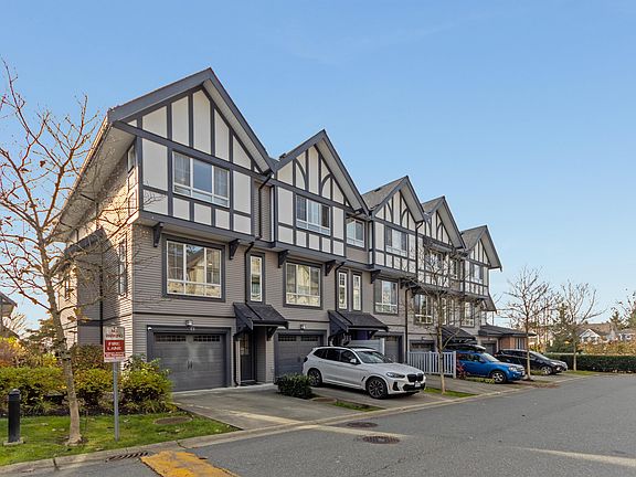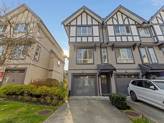 Beautifully upgraded end-unit townhome. Features 2 spacious bedrooms, each with its own full ensuite & powder room on the main floor. Fully renovated kitchen: solid-wood/plywood constructed cabinets, large island w/ double waterfall, new premium appliances, dim-to-warm smart lighting & cozy fireplace. New waterproof laminate, soft carpet & built-in storage. Relax on your balcony or covered patio in the private fenced backyard—only available to a few units in this community. Full driveway & large tandem garage provide versatile space. Ample storage throughout. Well-managed strata. Move-in ready. OPEN HOUSE: NOV 22 (SAT): 12-2 PM