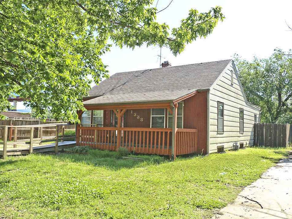 THIS PROPERTY IS SELLING AT A MULTI-PROPERTY AUCTION CONDUCTED OFF-SITE AT THE HOLIDAY INN (549 S. ROCK RD) ON JUNE 9TH AT 6:00 P.M. DOORS OPEN AT 5:00 P.M. FOR REGISTRATION OR PRE-REGISTER ONLINE. ONLINE BIDDING IS AVAILABLE THROUGH SELLER AGENT’S WEBSITE. 1,107 SF, 2 bedroom, 2 bathroom home. Covered front porch, with a detached 1 car garage, and fenced in backyard. Living/dining room combination with an additional recreation area featuring a wood burning fireplace. Unfinished basement provides extra storage space.*Buyer should verify school assignments as they are subject to change. The real estate is offered at public auction in its present, “as is where is” condition and is accepted by the buyer without any expressed or implied warranties or representations from the seller or seller’s agents. It is incumbent upon buyer to exercise buyer’s own due diligence, investigation, and evaluation of suitability of use for the real estate prior to bidding. It is buyer’s responsibility to have any and all desired inspections completed prior to bidding including, but not limited to, the following: roof; structure; termite; environmental; survey; encroachments; groundwater; flood designation; presence of lead-based paint or lead based paint hazards; presence of radon; presence of asbestos; presence of mold; electrical; appliances; heating; air conditioning; mechanical; plumbing (including water well, septic, or lagoon compliance); sex offender registry information; flight patterns, or any other desired inspection. Any information provided or to be provided by seller or seller’s agents was obtained from a variety of sources and neither seller nor seller’s agents have made any independent investigation or verification of such information and make no representation as to the accuracy or completeness of such information. Auction announcements take precedence over anything previously stated or printed. Total purchase price will include a 10% buyer’s premium ($1,500.00 minimum) added to the final bid. Earnest money is due from the high bidder at the auction in the form of cash, check, or immediately available, certified funds in the amount $3,500.