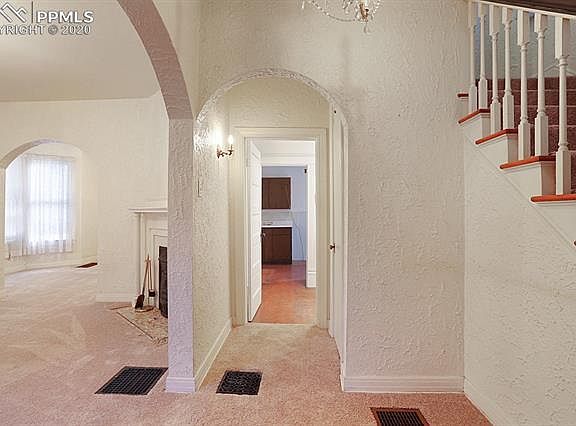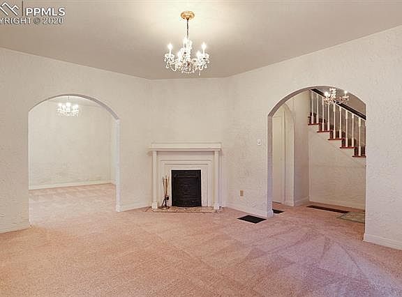 HISTORIC OLD NORTH END. A Victorian style home with a lot of charm and well maintained in a lovely quiet neighborhood. Fresh paint upper level, new carpet through out, old world charm with crystal chandeliers in living, dining rooms and formal entry: 9 ft. ceilings on main with arched entries to living room and dining room. New light fixtures upper level, up-dated bath, 4th BR is non-conforming - needs closet. Low utility bills. Wood burning fireplace flu totally replaced and updated with steel chimney liner. Seller has had roof inspected and has a roof certificate: electrical panel has been inspected and certified: furnace, hot water heater, and A/C have been cleaned and inspected: the main water line from house to alley has been replaced 7/2020: complete sewer line to alley redone in 2012 and city verified. Exterior is stucco for low maintenance. Sprinkler system front, rear, and strip between sidewalk and street. The concrete driveway belongs to the house - great off street parking. Fenced back yard with storage shed. Close to new shopping center on N. Nevada and I-25.