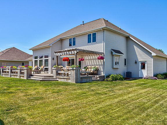 The perfect place to call HOME! This 6BR, 3.5 bath 1.5 story home features a spectacular floor plan with main floor master bedroom, dual-sided fireplace, 4 upper level bedrooms and a spacious finished lower level with full kitchenette and family room. With nearly 4000 square feet finished you will enjoy the various different living spaces...enjoy the custom deck with pergola and firepit that overlooks the backyard. Basketball court/hoop and storage shed outdoors as well. Recent updates include new carpet, updated kitchen and bath cabinetry.