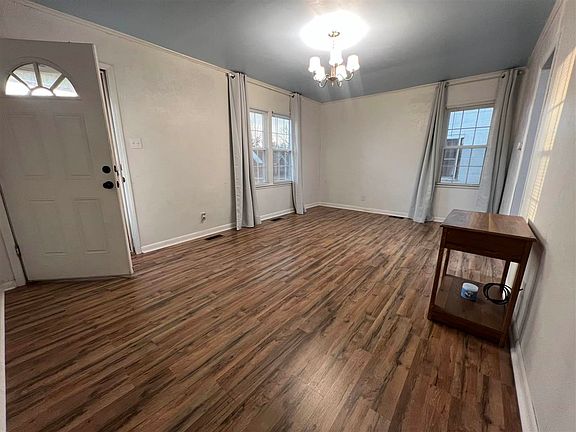 Adorable 2 bedrm brick home with all new windows, all new pex plumbing and central H&A! All new laminate flooring, new blinds/curtains throughout. Remodeled kitchen including glass tiles, LED lighting, new counters, sink/faucet and new tile flooring. Updated bathroom with new vanity, sink & faucet. Washer/dryer hooks ups are located in the 2nd living area which could also be used as a formal dining area or rec room! 1 car garage, carport, storm shelter, huge fenced yard, brick patio & great outbuilding!