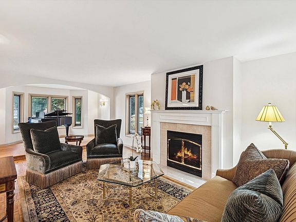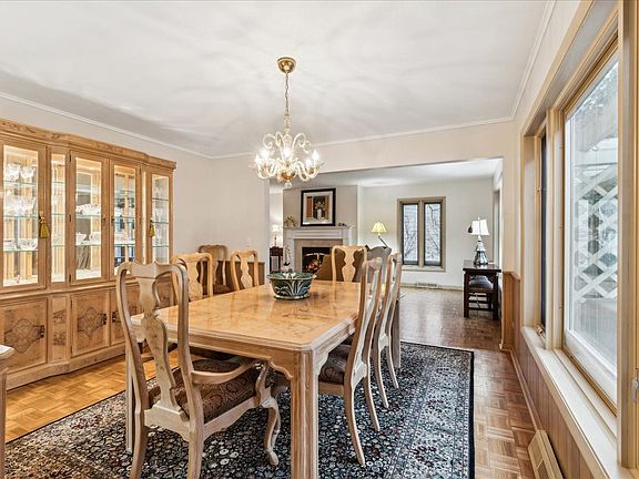 Nestled on the sought-after Sunview Lane, this stunning brick and stone home offers 4 bedrooms, 3.5 bathrooms, and sits on nearly half an acre of beautifully landscaped grounds. The first floor features a formal living room with a gas log fireplace and a charming raised nook-perfect for a reading area or music room. The dining room, seamlessly connecting the living room and kitchen, provides ample space for both casual and formal gatherings. The well-appointed kitchen, equipped with high-end appliances and generous storage, opens to a sunlit breakfast area and an inviting sunroom. Surrounded by sliding glass doors, the sunroom overlooks the professionally landscaped backyard, complete with a koi pond, stone patio, and pergola. A spacious family room with custom built-ins and a second gas log fireplace completes the main level. Upstairs, the primary suite offers a luxurious en-suite bath and a walk-in closet. Three additional well-sized bedrooms provide excellent closet space-two share a hall bath, while the third boasts a private en-suite. A large multipurpose room, currently used as an office, offers incredible versatility as an additional bedroom, playroom, or private in-law/au pair suite with its own separate entrance. A second laundry area is also conveniently located on this level. The renovated lower level is an entertainer's dream, featuring a play and movie area, and a dedicated wine room. Located just moments from the Park District's premier amenities-including golf, ice rinks, playfields, and tennis courts-this home offers both privacy and convenience. Don't miss the opportunity to experience this exceptional property!