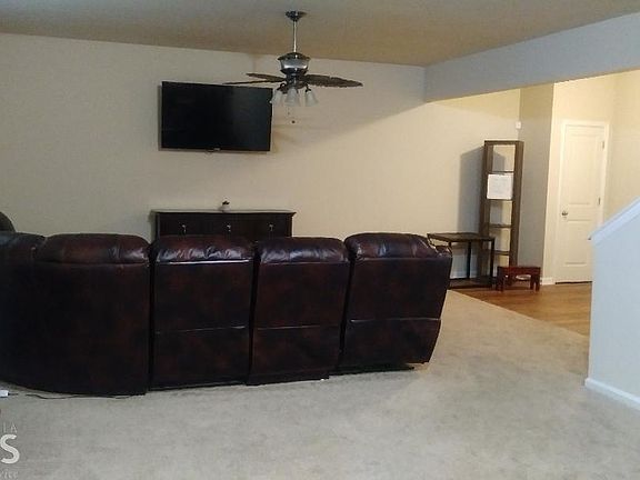 Walk into the open spacious floor plan. Large family room and breakfast area with a great view of the pond or the Big Screen TV that is mounted on the wall. Yes, it's all yours. Granite countertops and tile backsplash in the kitchen. Master suite upstairs. This home is in walking distance to the clubhouse, swimming pool and walking trail. Enjoy the beautiful fenced in the backyard and the warm cozy fire pit overlooking the pond. The refrigerator in the garage stays with the home. Entertainer's Delight.
