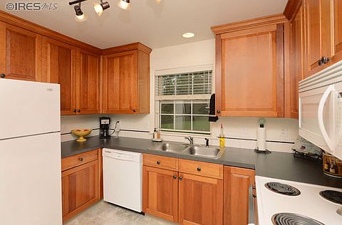 Buyer to verify measurements. True townhome close to CSU. Private fenced courtyard with herbs, flowers & spacious patio that backs up to greenbelt and ditch for country feel. 4 bedrooms, 4 baths, dining room, living room, study and sitting area. Cherry cabinets, updated bronze fixtures, living room fireplace, lots of windows and close to bus line and trails. Oversized one car garage. Hot water baseboard heat. Study in basement could be bedroom if closet added.