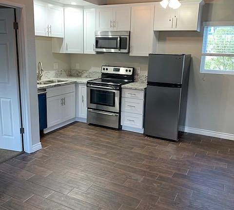 Wonderful remodeled 1 bedroom, 1 bath small cottage style apartment is in a perfect location on Balboa Peninsula. This unit has no adjoining walls and sits on its own in a complex of 7 units. Granite counters and stainless steel appliances in kitchen. Tile flooring in living room, carpet in bedroom BBQ for residents use. Walk to the beach and all the Peninsula's many amenities. 1 car parking in designated carport. Please email for appt to view Owner pays for water, trash, sewer and landscape maintenance.