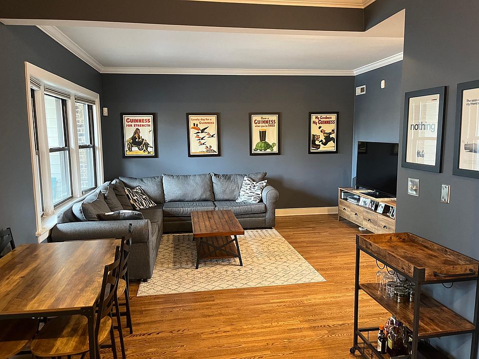 Updated & spacious 2nd floor Southport 1bed/1bath apartment! Unit features newly refinished hardwood floors throughout, large kitchen with tons of cabinet/counter space, stainless steel appliances, granite counter tops and room for a dining table. Spacious living room with north facing window. Bedroom fits king size bed or queen size bed and office desk. Two large closets in unit (1 in bedroom and 1 outside of bathroom). Large private outdoor deck with room for grill, table and chairs is perfect for entertaining. Brand new in unit washer/dryer! Walking distance to all that Southport Corridor and Wrigleyville has to offer. Short walk to both brown and red line train stations. RESERVED PARKING SPACE JUST STEPS FROM BACK DECK INCLUDED IN RENT! 12 month lease beginning on 6/1/2025. $1,000 refundable security deposit and first months rent due at the beginning of lease. Renter will pay for gas, electric, and internet. No smoking allowed in unit.