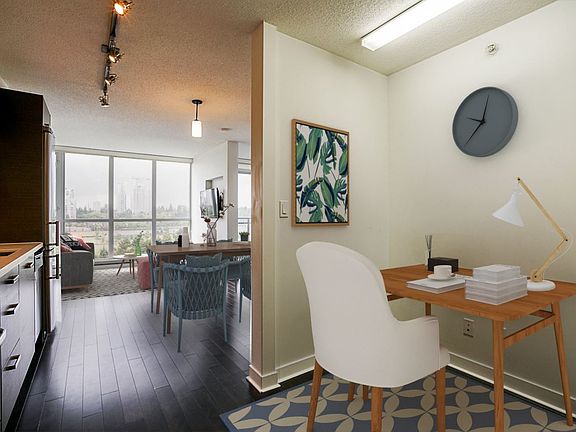 Welcome to City Point! This is the perfect property for FIRST TIME HOME BUYERS and INVESTORS! Work from home with comfort and a proper office space. This 1 Bedroom plus Den features beautiful South West views of the City & Park. Contemporary design with quartz kitchen countertops, stainless steel kitchen appliances, deluxe self closing cabinets and in-suite laundry. Enjoy the amenities in the building - FREE gym, clubhouse & media room. IDEAL LOCATION! Right across from the Gateway Skytrain Station. Near Central City, T&T Supermarket, City Hall, Library and much more. Please note that the photos are virtually staged. Book private showing today!