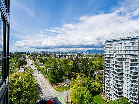 Welcome to City Point! This well-laid out corner unit, 1 bdrm + flex space features second-to-none views of the Fraser River & Mountains, a contemporary kitchen design with quartz countertops, soft close cabinetry, stainless steel appliances, laminate flooring, in-suite laundry, and 10-foot ceilings. Amenity room, full gym and courtyard. Steps away from Gateway Skytrain Station, Central City Mall, SFU, all shops, schools, and parks. Secured underground parking stall and locker. Hot water is included in the strata fee. Recently renovated in 2022.