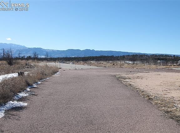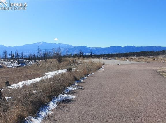 This must-see property is one of the few remaining lots in Black Forest with breath taking views of Pikes Peak and the Front Range. The 5 acre lot is located close to Shoup Road in the coveted Air Academy 20 School District. There is a paved asphalt driveway and P.E. certified detached garage foundation. The household well also has rights to water 1/3 acre and there is electricity to the foundation. The burned trees and slash have been removed. This exceptional lot is ready for your new dream home!