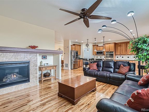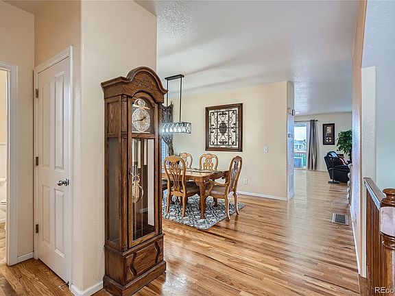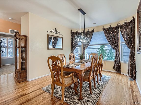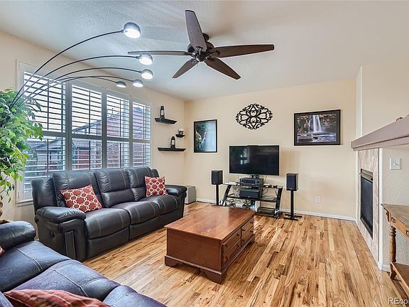 Explore this beautifully maintained five bedroom/ four bathroom home in The Villages at Riverdale. Upon entry you will be greeted with a gorgeous dining room ready for your next night of entertaining! Within the home you will find an elegant open floor plan allowing for an effortless, livable flow. Meal preparation will be a pleasure thanks to the stainless steel appliances, spacious kitchen island with bar seating, ample granite counterspace and pantry. Step into the comfortable and inviting living room complete with fireplace and ready for your next cozy night in. An office is located in the front of the home and is perfectly placed to get through a busy workday without distractions. A half bathroom completes this level of the home. As you head upstairs you will find a generously sized primary bedroom with its own fireplace and en-suite five piece bathroom. Two secondary bedrooms are conjoined by a shared bathroom with dual sink and a third secondary bedroom contains its own en-suite full bathroom. Retreat to the basement to find another living space with wet bar walk-out access! A fourth secondary bedroom and full bathroom complete the interior of this home. Stepping outside you have the option of enjoying the covered deck off of the main floor or avail yourself of the covered walk out patio from the basement level. Both places provide a beautiful place to grab a breath of fresh air and a wonderful view. With easy access to shopping, the airport and I-25 this home is truly a complete package. Schedule a showing today!