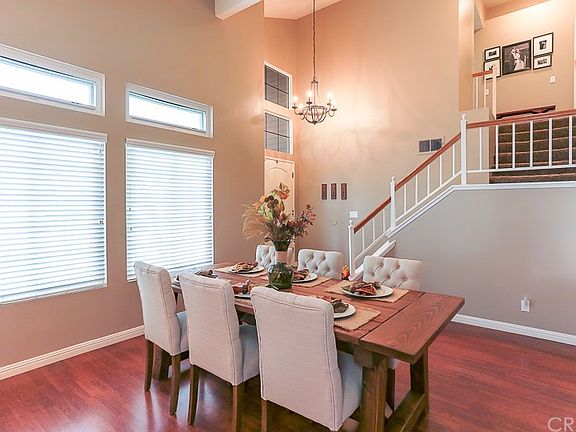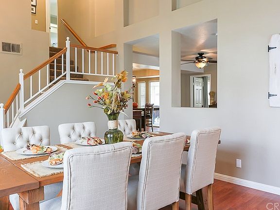Beautifully updated & upgraded Turnkey Horsethief Canyon home! 4 Bedroom, 2.5 bathroom home w/huge downstairs bedroom & half bath. Step into the entry way w/cathedral ceilings & cherry laminate flooring. Step down into the formal dining room (or formal living room). The open floor plan flows into the spacious family room w/brick fireplace w/wood mantle & 2 remote controlled ceiling fans. There is a spacious eating area w/beautiful rustic chandelier lighting. The kitchen features bar seating & beautiful cream colored granite counter tops that are accented by the modern rustic bronze hardware & subway tile backsplash. The kitchen also features a new faucet & Blanco Silgranit sink. The downstairs half bath features a new granite counter top, faucet & custom rustic wood accent wall. The downstairs bedroom is very spacious. Upstairs features 2 more bedrooms w/jack-n-jill bathroom. The master bedroom is roomy & bright w/high ceilings & features His & Her closets w/the largest hidden behind a beautiful barn door. This closet is HUGE! The master bathroom also has his & her sinks. The whole home features new faucets throughout, newer carpet & paint, new blinds throughout & a whole house fan. This smart home also features AC & sprinkler systems that can be controlled on your phone. The backyard is perfect for entertaining w/fully covered patio, new backyard lighting & raised planter beds. Walking distance to a baseball field, park, dog park & K-8 school. NO Mello Roos & LOW HOA fee.
