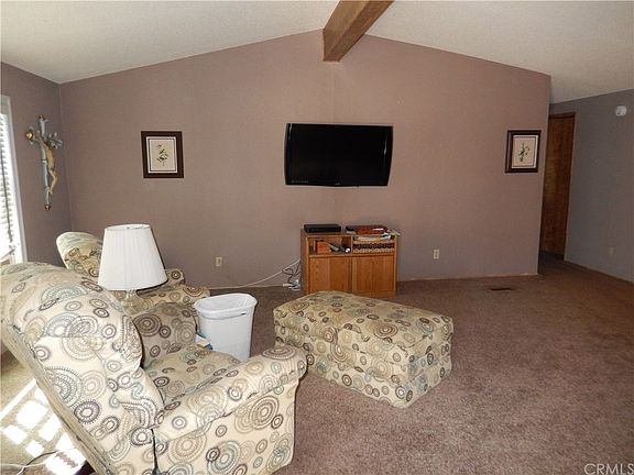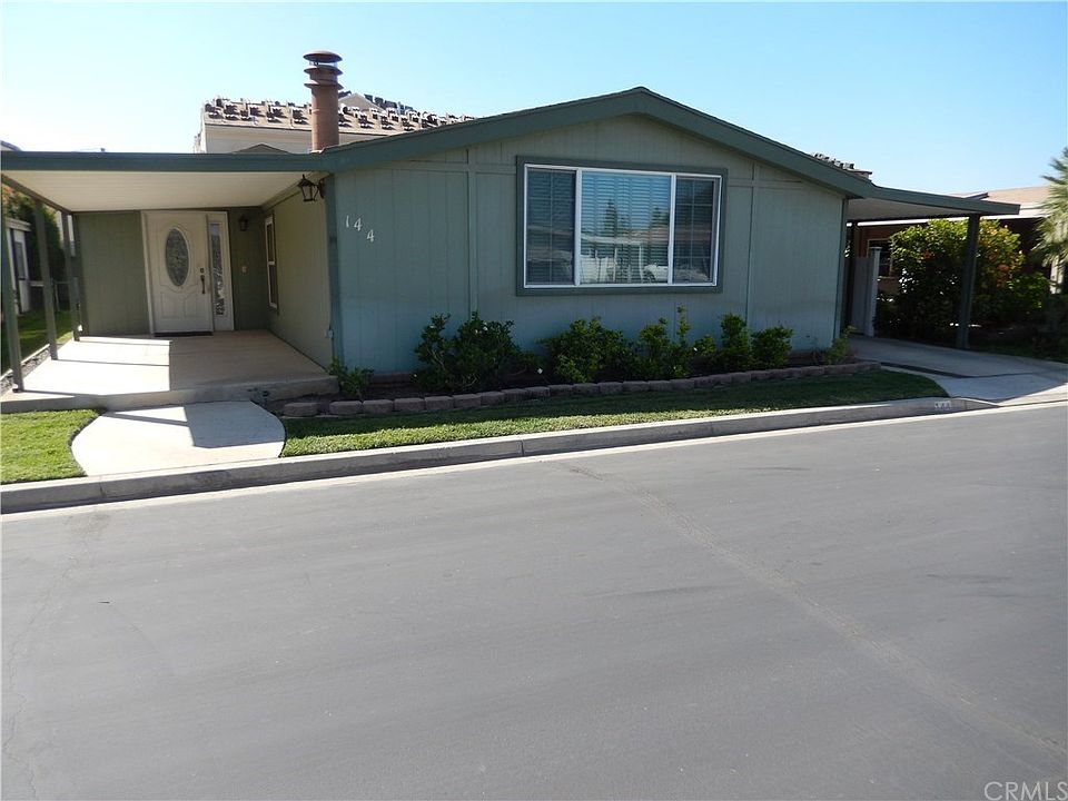 This beautiful 1880 square foot home has a large kitchen that is open to beautiful family room with a raised hearth fireplace. There is a formal dining area that opens into a spacious formal living room. The Very Large Master bedroom has a large walk in closet and a bathroom with separate tub and shower. This Home has all double Pane windows for comfort and noise reduction. The guest bedroom has a large closet and a quest bathroom across the hall. The back yard is fenced and has several mature shade trees.All the homes in this park are ground level with no stairs to enter the home. This Mobile home has been well maintained and is located in the nicest SENIOR park in the Riverside area.