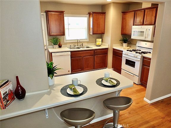 A beautifully and lovingly maintained 2 bedroom home tucked away in Garden Grove… Exquisite oak hardwood floors, freshly painted interior walls, new window treatments plus dual pane windows throughout. The sun-filled living/ dining room opens to the nicely appointed kitchen with stove, new microwave, garden view sinks, dishwasher plus serving/ breakfast bar. Both bedrooms have ample wardrobe storage. Linen storage is convenient to the central guest bedroom with a vanity and tub/ shower. 2 AC units plus great cross ventilation are huge pluses… as is the expansive motor-court / driveway with access to the garage with laundry outlets. A gated side yard opening through a big gate connects the front and rear grounds affording incredible RV access and ADU possibilities. Parklike… the walled and fenced rear yard includes a lemon tree, a barn style shed plus a towering shade tree. Only minutes from Costco and Home Depot, Village Green Park (home of the annual Strawberry Festival) and freeways connecting to all of Southern California! Truly a home of captivating charm and seemingly endless opportunities!!
