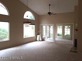 Charmer in Scottsdale Hills! Fresh and beautiful, with new paint, new carpet, new HVAC, new hotwater heater, upgraded kitchen and baths. Favorite floorplan features a large great room w fireplace, oversized eat-in kitchen w breakfast bar, lovely sunroom/den, master suite w huge bath, large 2nd BR and BA. Enjoy total privacy on your covered patio overlooking the professionally landscaped yard. Easy, comfortable Arizona living!