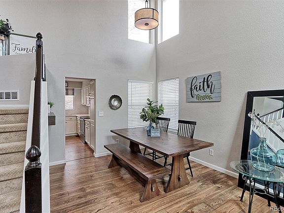 This beautiful 4 bed, 3 bath home has been thoughtfully updated with the design features that you desire. As you enter the home, the main floor has beautiful vaulted ceilings creating a dramatic and inviting entrance for your guests. Formal living and dining rooms are surround by large windows that provide an abundance of light. The main floor has upgraded flooring that is waterproof and scratch resistant making it easy to care for. The kitchen has slab quartz countertops, subway tile backsplash, updated handles and stainless steel appliances creating a wonderful environment for cooking. Just off the kitchen is the family room with an abundance of light. Additionally, on the main floor is powder room and large laundry room. Heading to the second floor the home has a beautiful dual staircase creating a dramatic design detail. Upstairs, there is a large master bedroom with a 5 piece master bath and his & hers closets. Completing the upstairs are 3 secondary bedrooms and a large bath with dual vanity sinks. Outside, the large backyard has a freshly painted deck that provides a perfect place to relax and enjoy the lovely Colorado weather. This attractive home has been well maintained through the years and ready for you to enjoy. Welcome Home.