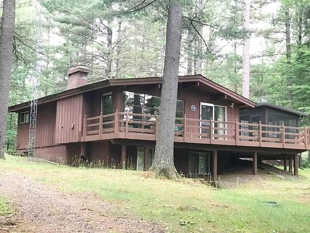 This Stick built home sits on 1.9 wooded acres with 320 feet of frontage on the Manitowish River on the Manitowish Waters Chain of 10 beautiful, clean and clear lakes! Free standing wood burning stove in the lower level provides lots of heat on those chilly nights. The walk-out basement, offers rec room with a dry bar, one bedroom, full bath and laundry. The eat in kitchen has plenty of cabinets, with a peninsula open to the cathedral ceiling and stone fireplace in the living room. Upstairs has two bedrooms and a full bath. The deck off the living room gives you a quiet place to sit and enjoy the great outdoors. Newer three season porch located on the deck, built by Leisure City, offers bug and rain free water views. Lot has a mix of trees and located in a quiet bay a short distance to the main river. Don't miss your chance to get on the famous Manitowish Waters Chain of 10 Lakes at a great price!