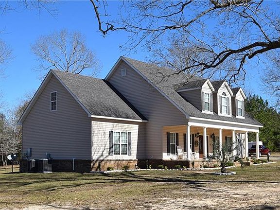 This custom-built beautiful home is located in the country with privacy but only 10 minutes from Saraland. The triple crown molding, high ceilings, columns and attention to detail welcome you as you enter this comfortable home. The large open concept living room with its fireplace is a perfect gathering place for your family. Sharing the ground floor, the Master Suite with its jacuzzi tub, separate shower and large walk-in closet are located on one end of the house. On the other end of the home are 2 large bedrooms and a full bath. All the stainless-steel appliances will remain in the centrally located kitchen. On the second floor, there are 2 more bedrooms and a large full bath. There is also a large 1300 Sq. Ft unfinished bonus room. One end has been framed for additional bedroom or office with the remaining area left open. The home has been meticulously maintained and recently upgraded with 2 new complete inside and of outside energy efficient heat pump systems. The system is large enough to accommodate the large 1300 sq. Ft unfinished bonus room. This 5 bedroom, 2779 sq ft. heated and cooled home offers 4500 under roof sq ft providing plenty of space. Outside there is room for the kids to play on the 3 acres of land. The home is situated on a ridge that slopes down and opens to give you great views from your back porch of the surrounding woods. There are 2 utility/storage sheds on the property that will convey with the house. ***Listing Agent makes no representation to accuracy of sq. ft. Buyer to verify. Any and all updates are per Seller(s).***