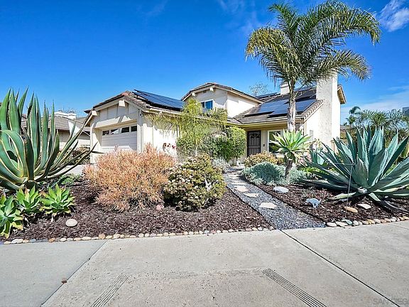 Your Own Secret Garden Oasis — Minutes from Torrey Pines Beach! On a generous corner lot, this beautifully upgraded home blends everyday comfort with effortless Carmel Valley SoCal living. Updated kitchen with granite countertops, double-oven gas range, & stainless appliances. Fresh paint, new flooring. Downstairs bedroom & full bath. The resort-style backyard features a saltwater pool with solar heating, spa, & outdoor kitchen. Fully owned solar, EV charger, new HVAC, remodeled baths, Double-pane windows with plantation shutters. No Mello Roos. Close to shopping, dining, top-rated Torrey Pines High School, beaches and freeways.