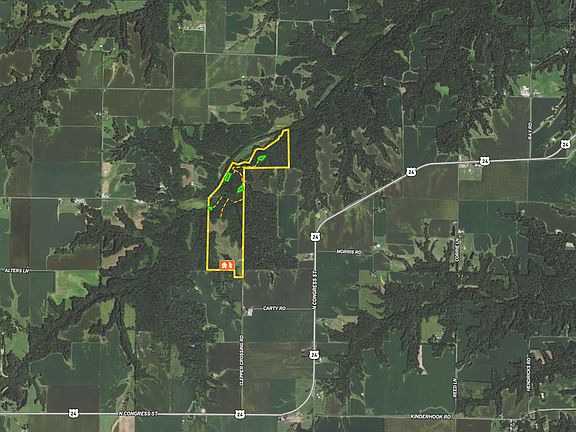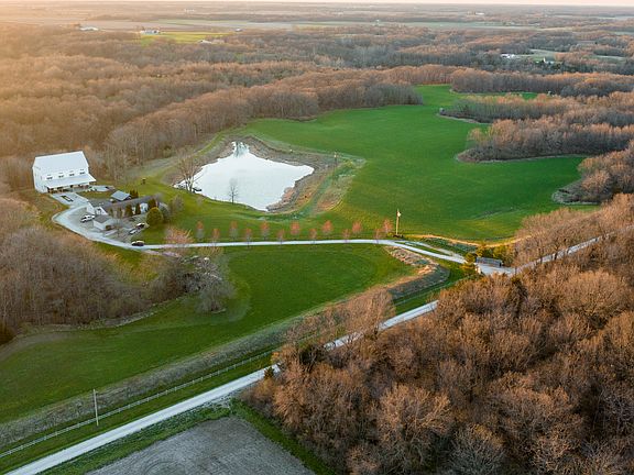 Discover the perfect property for your business or wedding venue outside Rushville. The gated entrance and long treelined driveway guide you to this incomparable estate full of possibilities. An impressive 40'x73' custom-built wedding/event venue and industrial building is currently under construction and is ready for customization. THIS BUILDING IS MASSIVE!!!! The lower level is one large open room with radiant heat plumbed into the concrete. The main level floor is precast structural subfloor panels, capped with a 6" concrete floor, and plumbed with radiant floor heat plumbing. The current main floor plan has 1,120 sq. ft. of finished living area, the remaining 1,800 sq. ft. being a garage/storage area, and all have 14' tall ceilings. The upper level is a large open area on the north end with a 33.5' cathedral ceiling with large windows to the north. A large deck is planned off the north side of this room and will be completed this spring. A kitchen or bar area and several bedrooms/bathrooms are planned on the upper level's south end. The large loft area, approximately 1,500 sq. ft., could be used as bedrooms or an entertainment area. 90% of the exterior is finished, and the north side deck and siding are expected to be completed this spring. Electric service has been run to the building. This massive building is somewhat of a blank canvas and could be finished to be a wedding venue, bed and breakfast, large lodge, or any other business venture you can dream up that requires a large amount of square footage. Approximately 7,300 sq. ft. between the basement, main level, upper level, and loft area. Ideally placed a few yards away is the mega mobile home with five bedrooms and four full bathrooms, already set up to accommodate many guests. The master bedroom and suite bathroom feature a small sauna. The two biggest bedrooms have full bathrooms, while the two most minor bedrooms share the last full bathroom. An open concept takes over the kitchen and the first living room with a wood-burning fireplace. The second living and dining rooms comprise the remainder of the home. The detached two-car garage creates a location to house vehicles, off-road vehicles, or mowing equipment. Don't miss the screened-in patio with an outdoor cooking station and a stunning firepit highlight—the ideal spot to enjoy good company during any season. The 1.5-acre pond north of both buildings is the cherry on top of this one-of-a-kind property, complete with a concrete central patio and floating dock. All are sitting on scenic 135 acres with well-maintained trails and food plots. The property offers excellent deer and turkey hunting opportunities, and access throughout the property is a breeze with the trail network already in place. Twenty-five acres are being mowed for alfalfa and clover, rented for $3,000 annually, which serves as a giant food plot come fall. Four other food plots are strategically located throughout the northern part of the property. This property is situated in an excellent area for quality whitetail, and the sellers have a long history of harvesting quality whitetails year after year. The possibilities are endless, whether you make it your own hunting camp, a unique rustic wedding venue, or a bed and breakfast where people can escape their busy lives. This fantastic property offers unmatched versatility and space and is ready for someone to come in and design it to completion with their imagination. Call today to schedule a private showing and turn your vision into a reality!
