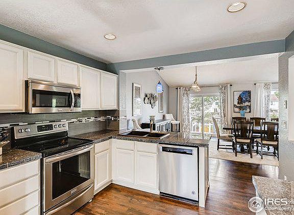Absolutely beautiful and bright, move-in ready 4 bedroom, 3 bath home in The Village at Hunters Glen! Natural light abounds in this updated and wide open floor plan. Stunning main level with huge floor to ceiling windows overlooking the backyard and green space. Bright white kitchen cabinets with stainless appliances and granite counters. Beautiful hardwood floors flow effortlessly throughout generously sized dining, kitchen and entry - Perfect space for entertaining! Spacious primary bedroom with 5-pc bath and walk-in closet. 2-car attached garage offers plenty of storage. The backyard is a peaceful sanctuary with upper and lower levels for enjoying the outdoors, and it even has a slide for quick access to the yard!