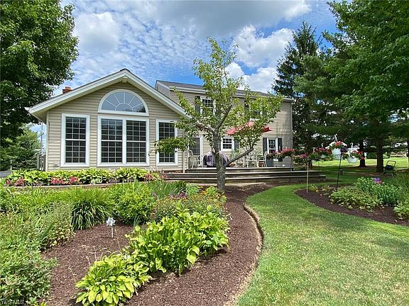 Beautifully Maintained Classic Colonial set on 1.5 manicured acres! This wonderful family home offers 4 Bedrooms, 2.5 Baths and great living space. Formal Living and Dining Rooms, Family Room with built-in bookcases, wood burning fireplace and newer carpeting. Enjoy views from vaulted Sunroom addition year round. Remodeled Eat-in Kitchen with abundance of cabinets and counter space, center island, all appliances, recessed lighting, hardwood floors and dining area with sliders to Trex deck overlooking deep backyard with lush plantings and gardens. All 4 Bedrooms on second floor including Master Bedroom with walk-in closet and private bath. Lower level includes Rec/Playroom, laundry room and great storage area. Gas furnace and central air approximately 6 yrs old. Newer vinyl windows. New septic system. 2-car attached garage with long paved driveway. 1-yr home warranty. Close to NDCL, UH Geauga Hospital, Munson Parks and Alpine Valley! Chardon Schools.