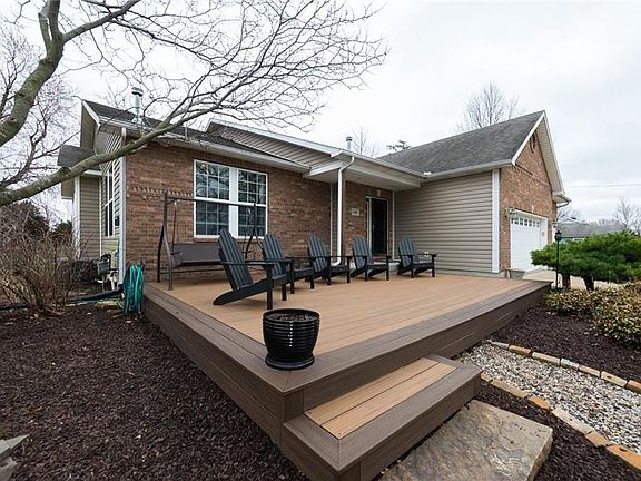 Enjoy the sunsets from the front porch of this stunning 3 car garage ranch with finished basement that is move in ready! Updated light and bright kitchen is open to the oversized living area for family gatherings. The main floor offers a spacious master suite with private bath and a large walkin closet, 2nd & 3rd bedrooms, full bath and main floor laundry with backyard access for a perfect drop zone/mud room. The finished lower level features a rec room, full bath a 4th bdrm & tons of unfinished area for storage Buyer & buyer agent to verify square footage.