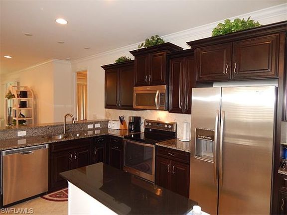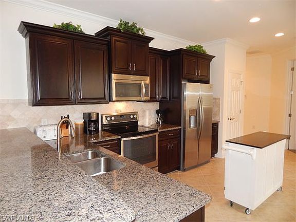 Fabulous location! "A" rated schools for elementary, middle and high school are close. Community School and Baptist Academy are near as well. Close to beaches, shopping, I-75, downtown Naples and all that SW FLA has to offer. Manchester Square is a relatively new family neighborhood just off Livingston near Pine Ridge. It offers a resort style pool, recreation court, fitness center, barbecue area, play area and basketball court. This Attached Villa features 3 bedrooms and 2 baths. The home also has brick paver drive and walkways, private fenced back yard and extended screened lanai. The eat-in kitchen has wood cabinets, granite counters, stainless appliances, and a 6 foot long moveable island for lots of extra storage space. Crown moldings, tile backsplash and plantation shutters are a few of the upgrades to this well kept home. The master suite has walk-in closet, dual sinks and marble shower. The fees are low and include cable, water, sewer, amenities and front gate.