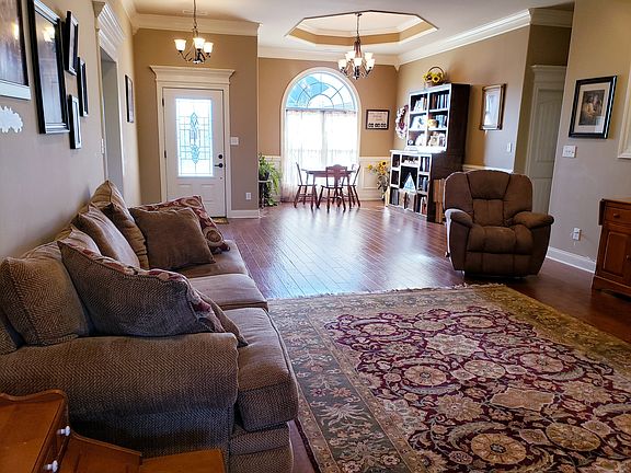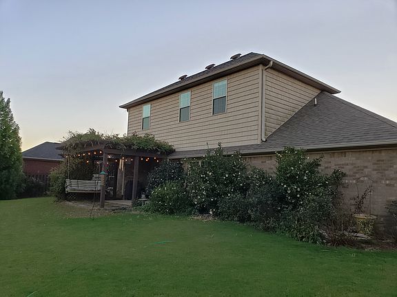 WILL WORK WITH BUYER'S AGENTS. Great open floor plan crown molding throughout the home. Familyroom has fireplace framed with beautiful mantle. Dining area has tray ceilings with wainscot and 2 tone paint. Eat in kitchen with high bar granite counter tops and custom cabinets; has gas range/ oven. Large master suite has tray ceilings, jetted garden tub, walk in tile shower, with 2 very large walk in closets. Upstairs suite includes large bedroom, bonus room and full bath. Laundry room has both electric and gas dryer hookups. Extensive landscaping blooms nearly year round. Back yard is very private with no homes directly behind and full privacy fence. Three car garage with in ground storm shelter.