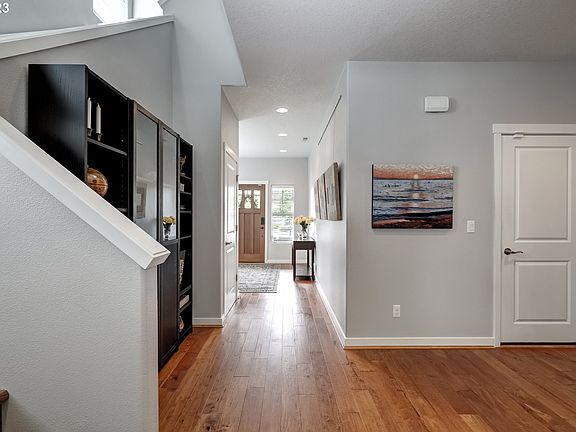 Beautifully maintained w/great room floor plan. 4 bdrms + bonus room. Backs to green space. Living room has gas frplc & opens to dining room. Spacious kitchen w/large slab granite eating island & stainless appliances, including, refrig & convection range. Vaulted primary suite has w-in closet + 2nd closet & tiled bathroom w/soaking tub. Wonderful backyard is perfect for entertaining & relaxing w/paver patio, hot tub & garden beds. Under-stair storage. Ring doorbell. Ecobee thermostat. A/C. Conveniently located near shopping, restaurants, schools & park.