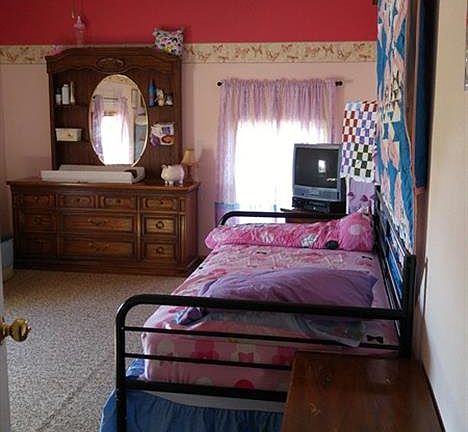 Lots of space in this 5 bedroom, 2 bath ranch style room in the country. Living room'/dining room combination. Plus a large family room with a wood burning fireplace w/insert. Nice kitchen with appliances. Covered deck on front & deck also in back. This home sits on 1 acre just north of Nevada. Living room, dining room, & playroom curtains & rods DO NOT stay. All mini blinds stay.