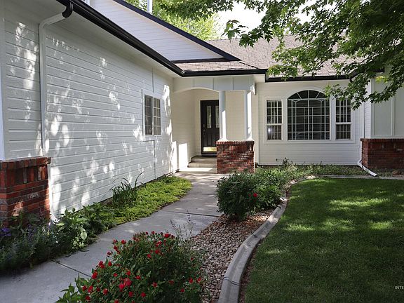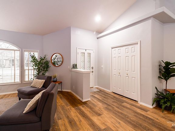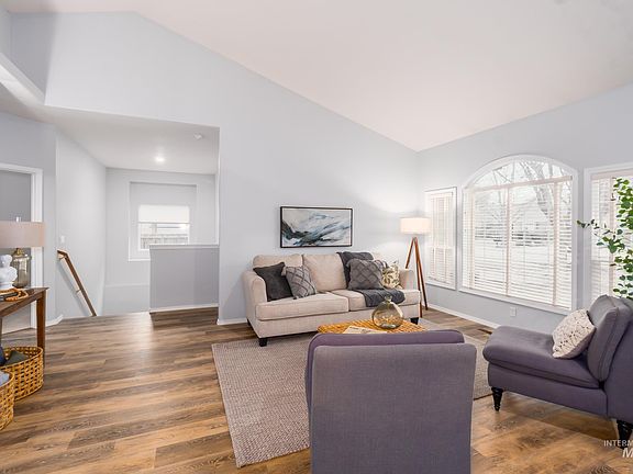 Completely renovated home in the sought-after Hobble Creek neighborhood! Enjoy new interior/exterior paint and flooring and step inside to discover vaulted ceilings and a sun-drenched great room with expansive windows. The brand-new kitchen boasts white shaker cabinets, quartz countertops, and a large island. The main level features a split bedroom floor plan with three bedrooms. The primary suite includes a private patio, linen closet, an updated bathroom with a quartz vanity, and a walk-in closet. Descend the wide staircase to an unexpectedly large, bright family room, along with two bedrooms featuring walk-in closets and a full bathroom. The fenced yard offers a shed with a roll-up door, a double swing gate ideal for small trailer parking, and two patios. Take advantage of the neighborhood walking path providing direct access to the YMCA and Hobble Creek Park. Enjoy the convenience of easy access to Meridians Village and Downtown Eagle.