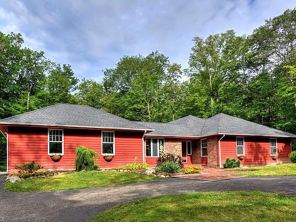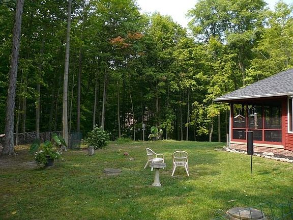 Beautiful 4 bedroom ranch on a wooded 3.25 acre lot near the end of a cul-de-sac street. Completely remodeled in 2008, the main living areas were opened up and have beautiful hardwood pecan flooring throughout. Other additions include, new HVAC (zoned), Pella sliding glass doors, a spacious new kitchen with stainless appliances and a breakfast nook with a view of the yard. The kitchen includes abundant cabinet space, an oversized walk-in pantry, a large island that seats three, and a fireplace. Elegant dining room with natural light and a beautiful view of the open air courtyard in the center of the house and the backyard. A large bright great room with vaulted ceiling, wooded views and fireplace make this house perfect for entertaining! Both fireplaces have Harmen pellet stoves to efficiently heat the entire house! Beautiful master bedroom with wooded views, ceiling fan, large bathroom with shower and Jacuzzi tub, and walk in closet. The additional three bedrooms are located in a separate wing of the house with huge closets and a shared full bathroom. There is a stunning office with a double view; one set of windows looking out over the front yard and a second set of windows overlooking the courtyard.There is a 1st floor laundry, finished lower level rec. room with a 3rd wood burning fireplace, and 2.5 car attached garage with a large amt. of storage. A screen porch connects the kitchen to a two level deck making a peaceful retreat. Property includes a invisible fence!