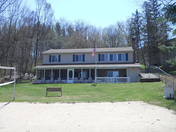 70 feet of sandy frontage on Woodbeck Lake in Oakfield township. Woodbeck Lake is a 88 acre all sports lake with great fishing. It also has access to Horseshoe , Banks, Thomas & Half Mile lakes. This year round home boasts 3 bedrooms, 2 full baths, a walkout level that has an additional kitchen, nice family room, the 2nd bathroom, & a beautiful screened porch that has a great view of the lake. The lakeside yard offers a volleyball area with a sand base, and the beach is sandy also. Nice dock, pontoon boat is negotiable. Two fireplaces, the living room is wood burning, the one in the family room is a gas fireplace. Sellers have owned this property for 38 years and have maintained it very well! Lake association dues $35 per year, very active association. Possession anytime after 7-22-18.