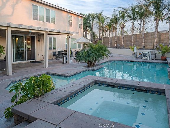 A jacuzzi-sized soaking tub, a walk-in closet, recessed lighting and vinyl flooring. The upstairs laundry room is fully equipped with plenty of storage cabinets for added convenience. Outdoor Oasis- Step outside to your private backyard paradise, perfect for relaxation and entertaining. Highlights include: A beautiful swimming pool with a six-foot deep end, towering palm trees that add a resort-like ambiance, privacy-height fence ensuring peace and serenity. There’s a separate entrance to the property. The attached two-car garage easily accommodates two vehicles and provides extra storage space. Don’t miss this incredible opportunity to own a move-in-ready dream home in one of Eastvale’s best locations. Schedule your private tour today!