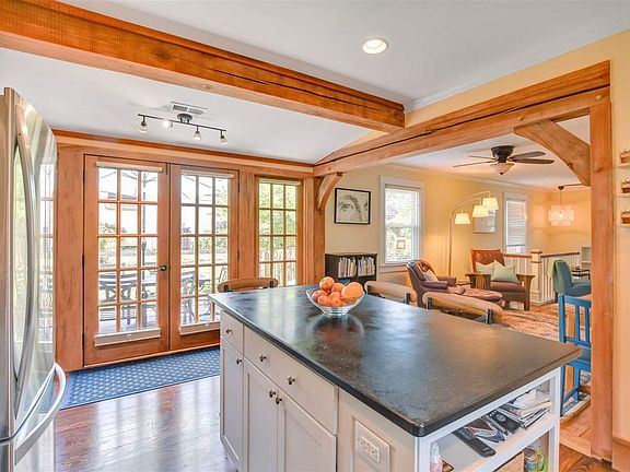 - Kitchen Cabinets/Counters: Glass Front Cabinets, White Cabinets, Soapstone Counter