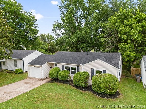 A charming Brookside bungalow boasting a spacious backyard, conveniently situated near River Trails, the "Gathering Place", the soon-to-be-open "Zink Park" and a thriving grocery store hub! This home features a low-maintenance exterior, a generously king-sized primary bedroom, and built-in storage closets, reducing the need for excess furniture and enhancing the sense of space in the bedrooms. Transform the third bedroom into a versatile office space with the addition of French doors leading out to the back deck. Recent upgrades include a new roof and vinyl windows installed in 2024. Enjoy a cozy bungalow kitchen with lots of natural light provided by the access door to the back lawn, and a quaint bistro eating area overlooking the front porch next to the direct garage access into the home. Wood & tile flooring only! Widened driveway space! This quaint bungalow is smartly designed offering a surprisingly larger feel! A must see! One year AHS Home warranty included!