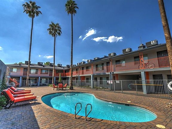 Welcome to Coronado Flats! This large fully furnished space (available September 1) features designer styling with a gourmet kitchen, dining area, large living room with a 55" wall mounted smart TV, and a full sized stacked washer/dryer. The 3 spacious bedrooms each feature modern and comfortable queen beds and large closets. Extra 1/2 bath provides additional convenience! The property features a beautiful pool surrounded by landscaped grounds for entertainment. Onsite parking, secured premises, and indoor bike storage make this the perfect city residence. The "Historically Modern" Neighborhood of Coronado is an eclectic mix of residences in Midtown Phoenix, with quick access to everything Downtown & Uptown. This neighborly community features restaurants, shops, arts, and transportation at your fingertips. $50/mo flat fee for water/sewer/trash