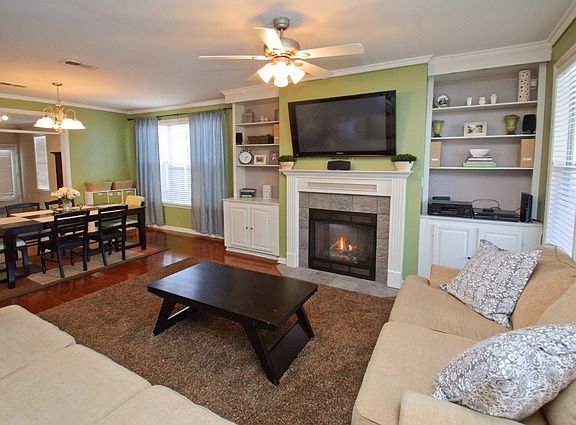 Immaculate, move in condition, tastefully decorated & located in one of the best spots in Harbor Town - fronts on to green space. 3 bedrooms/2.5 baths. Open floor plan with high smooth ceilings, upgraded light fixtures, beautiful Hdw floors. Excellent kitchen with breakfast bar, built-in cabinets in keeping room and access to the delightful patio. Wonderful balcony off the spacious master suite - perfect for your morning coffee. Rear loading double garage. It doesn't get much better than this.