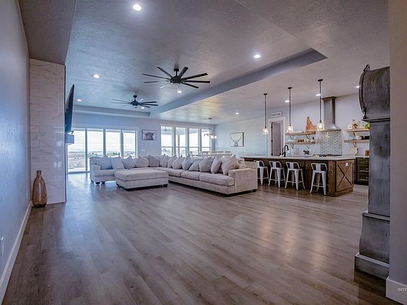 Step into luxury with this exquisite custom built home with 27.643 acres of breathtaking views. From the moment you walk through the door you are greeted with an expansive living area equipped with a cozy fireplace and soaring windows that overlook the Owyhee mountains. The kitchen was built for the culinary enthusiasts with a large island, custom cabinetry, quartz countertops, large side by side refrigerator/freezer, gas range and custom built butlers pantry. The luxurious master retreat contains a large bedroom that leads into an ensuite bathroom containing a double vanity sink and floor to ceiling tiled shower. The master closet is a fashionistas dream with spacious floor to ceiling storage, center island and beautiful chandelier.The large laundry room is convenienty connected to the ensuite bathroom leading to mudroom, guest bathroom and garage. This home is an entertainers dream with large open floor plan, 5 spacious bedrooms, huge covered patio, outdoor fire pit. playground and volleyball court.