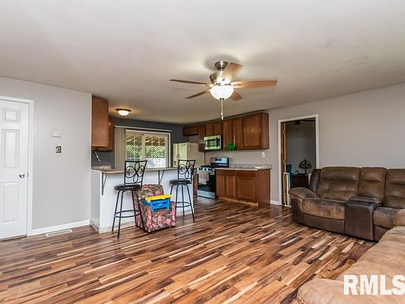 Great ranch home located on a quiet cul-de-sac in East Peoria. This 862 sqft ranch home features a large living room, an updated kitchen with nice countertops, updated cabinets, and stainless steel range and microwave. There are 2 bedrooms, an updated full bath and an updated laundry room. Outside is a large fenced yard, an oversized 1 stall garage, and a back covered deck. Updates in the home include the kitchen, bathroom, flooring, and a new hot water heater. Come take a look today!